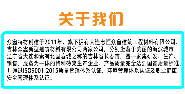 大連志恒眾鑫專業(yè)生產(chǎn)銷售風(fēng)電灌漿料,強(qiáng)度80Mpa,100Mpa,110Mpa,適用二次灌漿,設(shè)備基礎(chǔ)灌漿,我們是大連灌漿料廠家,長(zhǎng)春灌漿料廠家,有環(huán)氧砂漿,套筒灌漿料,PC座漿料、自流平砂漿等50多種產(chǎn)品,可滿足您不同需求,有任何技術(shù)難題歡迎來電咨詢:400-0411-552 眾鑫特材期待您的光臨!